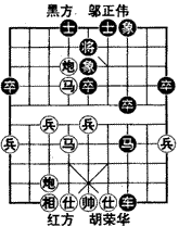 此局是1978年上海市六运会时胡荣华与邬正伟的实战对局。如图形势,红以连珠妙手而获胜。