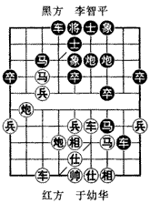如图所示,红方的车马炮在要道口上潜伏下了进攻的力量,随时可以发动攻势。从形势上分析,黑方的防守比较稳固,于是,红方采取了边攻边牵制对方的办法围攻对方,终于取得了胜势。红方先行: