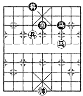 马高兵对马象系非必胜的残局,因黑马极易禁控红兵而舍马换兵成单象和单马的残局。本局由于黑马无法阻止红兵进九宫逼将,故红方可以运用挂角马、钓鱼马等杀法巧胜。