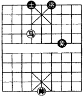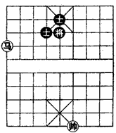 注:①这样跳马取势,不让黑方往4路落士,使将士失调,是取士获胜的要诀。如误走马九退八,士5退4,马八进七,将5退1,马七进八(帅四进一,将5退1,马七进八,士4退5,帅四退一,