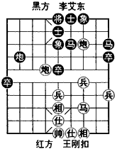如图是1987年第六届全运会预赛,贵州王刚扣与四川李艾东经过24回合较量弈成的残局。本局红方巧运双炮,扼马出路,然后渡兵制马,一鼓作气,直捣黄龙。