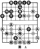 (图A)是1963年上海市比赛中,普陀区李定威对港务局朱有富的实战中局。红方多一子,但边马被捉,并且黑方有象5进3捉双车的手段。现轮红方行棋,果断地补仕保马,实施弃车战术,最后取得胜利。双方着法如下:
