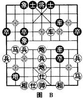 如(图B)形势,红方车、双炮、一马已构成强大的攻势,右翼马对战局已无关轻重,所以红方再度弃马,构成精彩杀局。