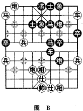 1979年7月4日,省市棋赛中胡荣华对辽宁赵庆阁弈至第20回合的形势如(图A)。双方以仙人指路对飞相转中炮七路马对穿宫马布局演变而成。红黑双方都在河口屯以重兵,严阵以待,红方借先行之利,抓住黑车位置不佳的机会,弃中兵,进双马发动攻势,终于横线马炮成杀,实战着如下: