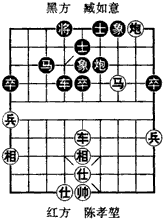 黑方如走车4退1,则炮二退二,象3进5,车四进四,红方得子胜。