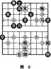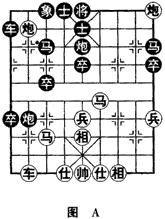 河北刘殿中对黑龙江赵国荣在全国团体赛中曾弈出如(图A)形势。双方大子相等,但红方输兵,且右炮被捉,似处劣势。红方仔细审局后,抓住黑方左侧防守空虚的机会,果断弃炮升车右移,取得三子归边的优势,终局妙演弃车的杀手,马后炮获胜,实战着法如下: