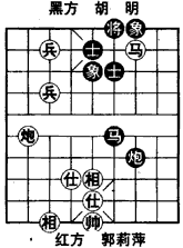 1.…………象5退7!2.车二平三士5退6 3.马三进四将5进1 4.马四退六将5平4