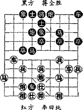 如图,是1984年全国团体赛李曰纯――蒋全胜弈至17回合轮黑走子的形势,双方子力相等,阵容整齐,局面也显得平静。谁料,平静之中有波澜。蒋全胜敏锐地发现右边肋道上的车马炮足以掩护左助购将炮的伸插,立走: