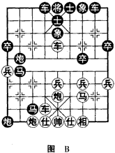 (图A)是1997年第4届“嘉丰房地产杯”象棋王位赛,辽宁卜风波与河北刘殿中,弈至第11回合时形势,双方由“五七炮过河车对屏风马左马盘河”演变而成。观枰得知,局势平稳。黑方利用先行之利,进马捉炮,用炮牵制红方巡河车,取得先手,然后进马捉车擒得底相,取得优势,最后双车杀帅而胜。实战着法如下: