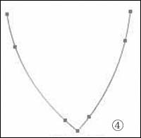 前面我们对三角形进行调整时,调整的幅度很大,不太好把握细节,所以我们要给那两条边增加些节点,这样就可以对每条边的不同段进行微调了,增加节点一般要注意:节点不要太多,分布要均匀(如图4)。
