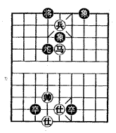 此局选处同上,名为“袜马潜戈”。如(图8)形势,为排局形状,但类似残局亦可能出现,不过原著增加了取胜的难度。