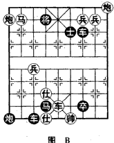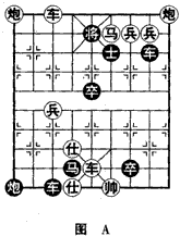 象棋古谱《梦入神机》所载的第97局,局名《拥众拒险》也是一则“马后炮”胜法的排局,如图A。本局布子奇特,着法玄妙。黑方车马炮卒欲置红帅于死地,红方通过弃车运马连续“将军”,以“马后炮”抢先一步成杀。其中运马技巧简练有力,具有实用价值,着法如下: