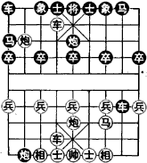 如图,开局仅8步棋,红双车占肋叫杀,可见子力出动之快。至此黑如补右上,红炮打中卒即构成铁门闩杀势。
