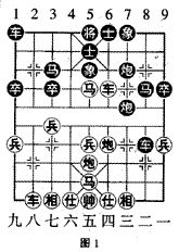 图1是全国团体赛中,安徽张元启与上海于红木二位大师所弈成的中局枰面。双方大子俱全,处于前中局,红方在洞察到弃炮破士进行攻杀的机会,有胆有识地展开了一系列进攻。
