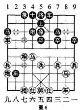 图6是全国个人赛中安徽大师蒋志梁与江苏特级大师徐天红弈成的中局形势。表面看来,黑方突然弃炮轰仕只是为得回一马而 净赚一仕,实则不然。