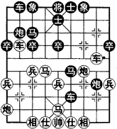 如图,是1995年香港棋王赛赵汝权对黄福弈至第18回合时的形势。由五九炮过河车对屏风马平炮兑车布局演变而成。现在该黑方走子,黑抓住红窝心马之弱点,退马弃炮暗伏反击的妙手,且看实战着法: