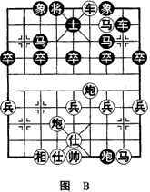 如图B,红弃车杀士,简捷明快,犹如睛天霹雳,黑将束手就擒!因其无论走士5退6还是将4进1,都难逃打炮四平六“重炮杀”故而签字认负。