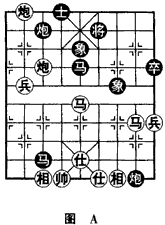 1983年全国象棋团体赛,湖北胡远茂对浙江陈孝坤。双方以中炮对后补列炮布局,激战至39回合形势如(图A)。这是一则无车残局,黑方除亏一士,其余子力相等。黑左炮沉底,右马卧槽,3路炮如能平助攻杀,则黑方占优。红方实战借先行之利,妙手弃兵攻黑卧槽马,借兑子之