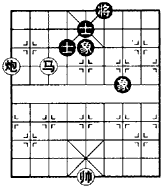 马炮方即使无仕相,也能必胜士象全,如有仕相辅助则胜来更易。此类局势,须借帅力协同作战,对黑方士象采取各个击破的战术。如图,红先胜: