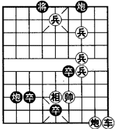 平兵挡炮,谋和要着。如误走兵三平四,则将5平6!兵五进一,炮8进2,兵六进一,炮8平5,兵四进一,炮5退2,兵六平五,炮5退5,兵四进一,卒4平5,黑胜。