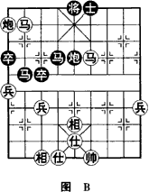 如图B,红马再扑卧槽,黑如欲不丢子必走士6进5,而红帅早已在肋道等候多时,黑推枰认负。