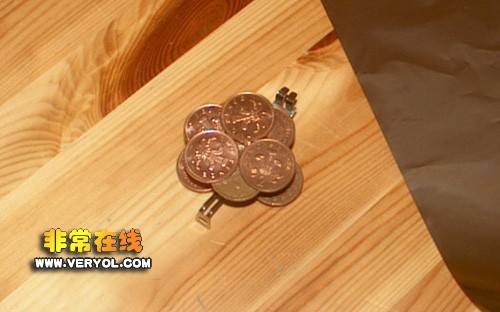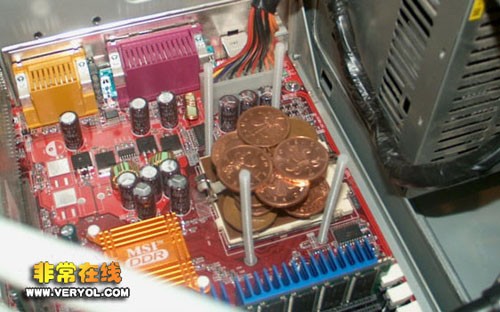 硬币用特制的胶水粘起来后,用同样的方法与散热器扣件连接起来。