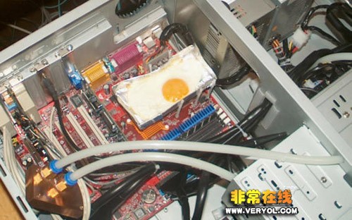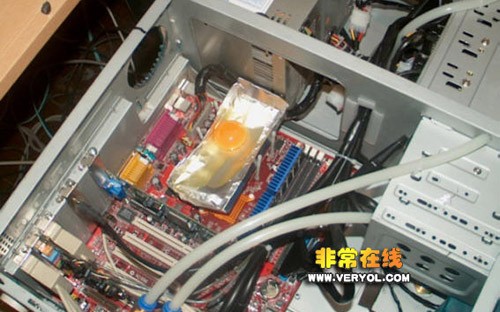 随着气温不断的上升,大家也逐渐开始关心起自己电脑CPU的散热问题。但有的人不但不怕,反而利用自己的CPU给自己做起饭来。自从上次给大家介绍了一位国外高手用了7颗Cyrix处理器制作了一个电热锅后(《处理器新用途!7颗CPU打造超NB电热锅》原文),其他的DIY高手们也坐不住了,于是纷纷将自己的装备拆下来,来一试自己的厨艺。这不,又有一位“虾壳”,把自己的水冷拆了下来,准备再来一次CPU煎鸡蛋。