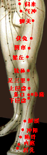 主治:膝胫痹痛,胃痛,乳痈,下肢不遂。现多用于急性胃炎,胃痉挛,乳腺炎,膝关节及其周围软组织疾患等。