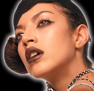 画眼影技巧 使用手指将大片的芥末绿金色眼影膏铺满整个眼眶,并向着颧骨方向晕染开,使之在与肌肤过渡处呈现出本来的黄色,睫毛根部使用黑色眼线笔画出类似长长卵形叶柄的眼线,加深轮廓。因为眼唇色彩强烈,将眉用淡咖色眉粉淡化处理,将睫毛用纤维睫毛膏拉长,以突出眼睛轮廓。