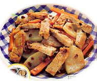 推荐理由:能在鱼肉中摄取大量蛋白质,而青椒和红尖椒是维生素C含量最丰富的食物(100克青椒含有100mg维生素C),而富含维生素E最丰富的食物就数坚果类(诸如松仁)。休闲 居 编 辑