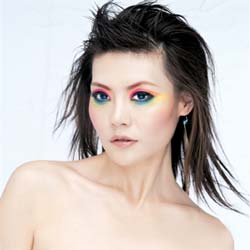 妆面特点:亮丽的彩虹妆,是今年女孩子的最爱,夸张的颜色,是给本来就喜欢彰显个性的女孩最好的诠释。斑斓的世界本来就不可没有颜色,彩妆的世界也会缺少彩虹一样的妆面。眼部极尽夸张,运用了艳丽的粉红、明快的黄、清澈的亮蓝,使整个眼部都充斥着颜色,眉毛也夸张的运用了红棕做点缀,使眼部效果更加的明显。腮红及口红都选用了蜜色,这样配合使整个妆面更加跳跃,更加动感。