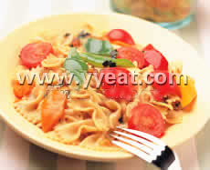 4. 捞起作法3的蝴蝶面放入作法4的酱汁锅中并加入黑橄榄丁煮约2分钟后,即可起锅装盘。休 闲 居 编 辑