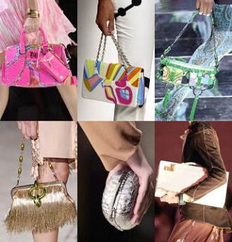 Fendi(延续女性化):延续充满女性化的皮具系列,但是面料更为柔软。小装饰物的应用也很出色,把水晶绣在半透明的迷你包上很有创意。