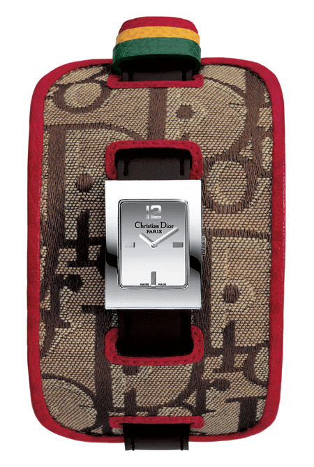 Malice腕表系列将自己完美地套入Rasta的最新潮流里,蜕变成焕然一新的更具女性化魅力的新姿,完全展露出它令人赞叹的特色。银镜表面令金属表壳更为抢眼,而可随意更换的棕色牛仔皮表带在红黄绿色的装饰下,配搭由Dior经典棕色字母交织图案和红色皮革组成的可自由拆除腕带,拼合出前卫夺目的色彩。休 闲居 编 辑