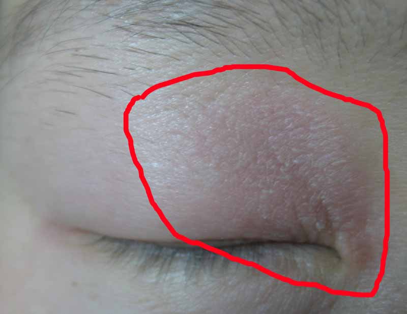 左眼较轻,不明显,右眼较重,下附今日患处实照一张: