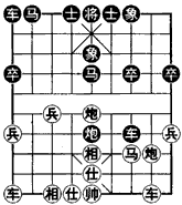 (棋例)1975年6月第3届全运会预赛中,胡荣华对浙江蔡伟林,由飞相局对左中炮布局,弈至第11回合的形势如图。分析局势,双方子力均等,此时黑方过河车捉马,企图让红马兑炮争先。现轮红方走棋,胡荣华客观地审度了目前的形势,果断地弃马、出车,大捣黑方左翼底线之虚,逐步扩大了战果,取得胜利。实战着法如下: