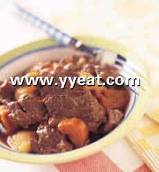 (1)将牛腩洗净切寸段,用热水汆烫去除血水后洗净捞干备用,将材料B分别处理好备用,马铃薯、红萝蔔切块状,葱切段、辣椒去蒂头拍扁。