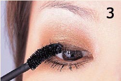 3.睫毛是眼睛神采的重要主角,使用睫毛膏时,先从睫毛根部往前端刷上一层,一定要从最根部的位置开始刷睫毛膏,否则很容易造成睫毛下垂的效果,等第一层干了以后,继续刷上第二层,刷多层浓密效果会很好。