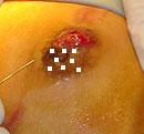 此时,如果病变进一步扩张,可形成一炎性肿块。有时炎症呈急性发作而成脓肿,脓液中常混有粉渣样物,在乳头乳孔中亦有粉渣样物排出,则称为“粉刺样乳腺炎”。又因在坏死组织周围有大量嗜酸性白细胞、浆细胞和淋巴细胞浸润,尤其以浆细胞最多,故称为浆细胞性乳腺炎。