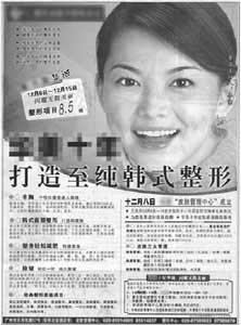 昨日有读者向记者爆料,他在广州的报纸上看到李湘为一家整形美容机构代言,照片很漂亮,感觉就像李湘做了整形似的,该读者还称,自己其实是李湘的超级FANS,一直以来李湘都是以乖乖女形象出现,但是不久前他在本报看到李湘和男友出席一活动的照片,照片上李湘的胸部看起来特别丰满,怎么看怎么别扭,他委托记者向李湘询问,她是不是做了丰胸手术。根据读者爆料,记者在广州一家知名报纸12月9日的一个版面中看到,李湘的一张带着微笑的头像被放在了头条位置,李湘的脸看起来比平时瘦了很多,旁边还有李湘的签名。广告词上写着“打造至纯韩式整形”,其内容包括了丰胸、面部整形、减肥、除皱等诸多项目。休 闲 居编 辑
