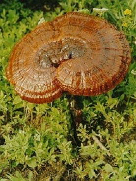 一名菌录芝,或木灵芝,为担子菌类多孔菌科灵芝属。是寄生于栎及其他阔叶树根部的蕈类。伞状,坚硬,木质,菌盖肾形或半圆形,紫褐色有漆状光泽。各地均有分布,近来有人工培养,培养品形态有变异,但其疗效相同。古称五色录芝,有青芝、赤芝、紫芝等于功用相似