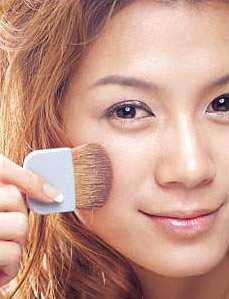 选用比肤色略深的腮红,呈一字形横扫面颊,凸显健康的美感。