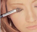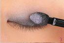 第一种化妆法:从上轮廓线起,用暗灰或灰色在上面晕染,眼线要细长,上下眼线不交叉,这样就像双眼皮那样漂亮。