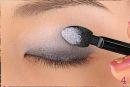 在刚刚涂刷上黑色眼影的上方交界处,涂刷上灰色的眼影,要使得两个颜色互相融合。