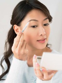 【POINT】眉毛浓密的人可以用眉粉改变颜色,眉毛稀疏的人先拿笔蕊勾勒出眉型再描绘,画出眉毛后一定要用眉刷顺着眉头至眉尾方向刷拭几遍,让色泽均匀。