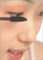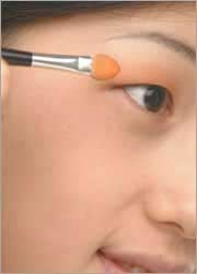 先用橙色眼影涂抹眼睑部位,然后选择一款跟眼影相同色系的睫毛膏仔细涂刷,使眼部效果更加自然协调,整体打造出带有珍珠光泽的橙粉眼神。