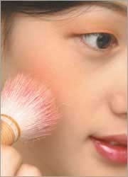 用艳粉色腮红涂抹颧骨部位,以便突出重点。