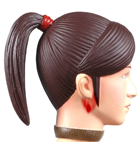 图上有红色的地方是绷紧肌肉时疼痛的地方,深红色的地方有压痛感.主要就是耳垂下痛.