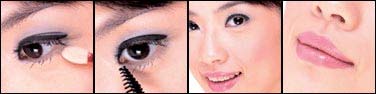 6.使用黑色睫毛膏涂刷上下睫毛,由眼头朝中间仔细刷涂睫毛,让眼睛变大更可爱。