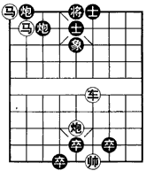 棋势与对策:黑方小卒剜心,两炮三卒要杀。红方则用砍的兵法,以砍取胜。